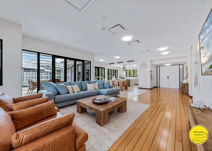 Situated only 450 metres from Boathaven Beach, spacious 225 m² Penthouse Living At The Port Of Airlie Apartment provides guests with Wi-Fi for either business or leisure. The 4-bedroom apartment is a 5-minute drive from Abell Point Marina and only a few metres from Heart Reef.
